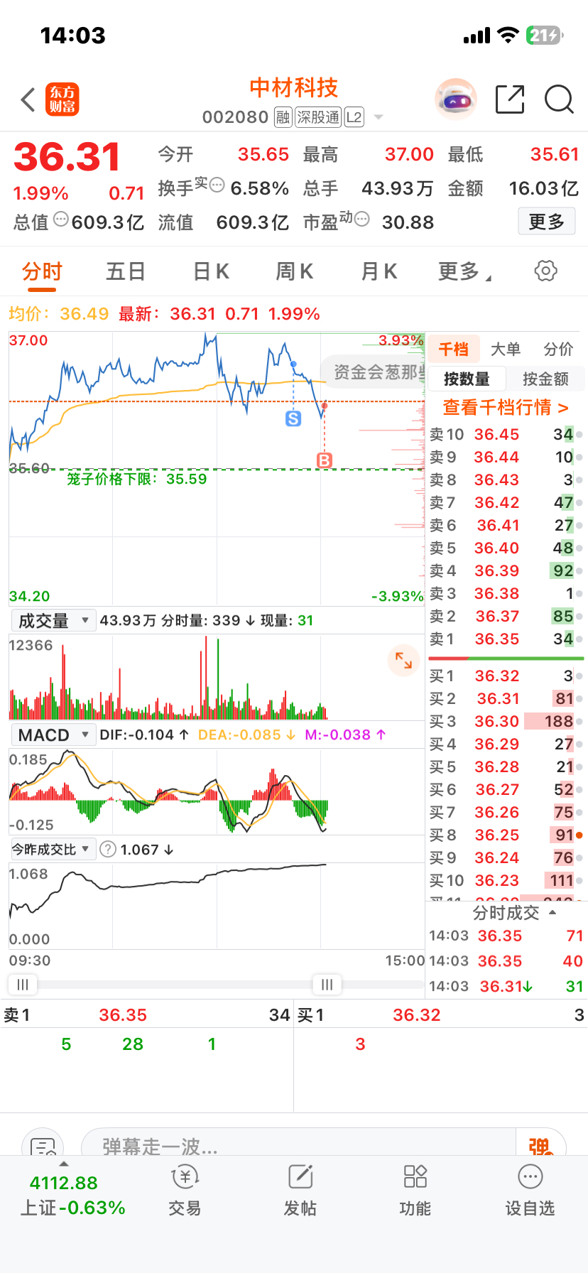 $中材科技(SZ002080)$ 今天给机会做T了,今天还能红的,预期都不错!