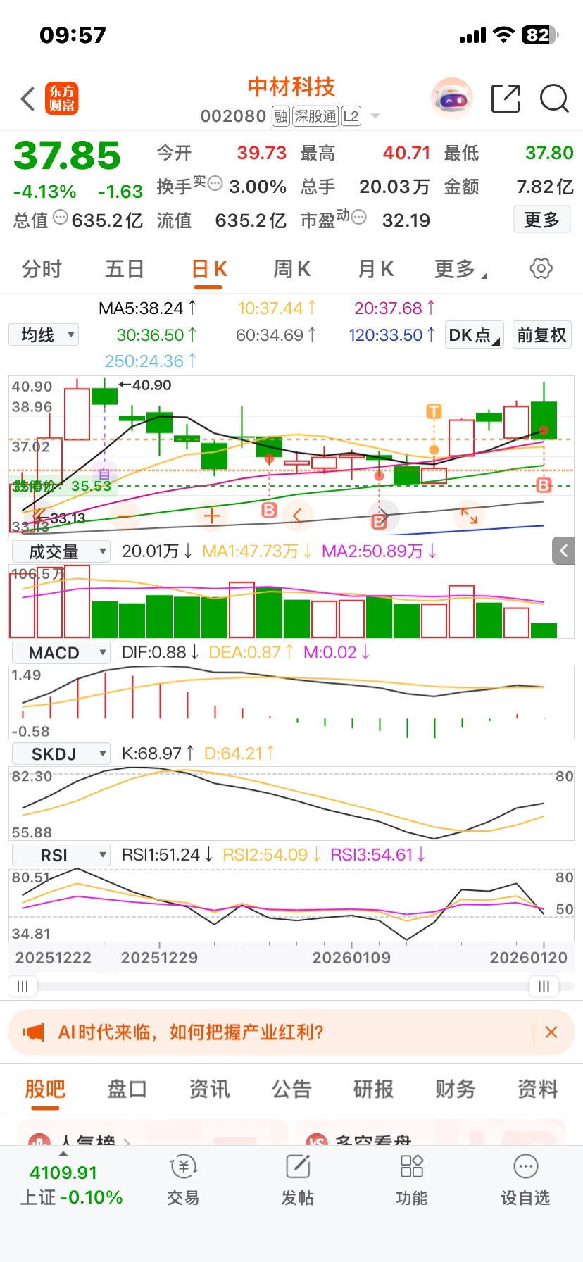 $中材科技(SZ002080)$ 放量可能骗人可能对敲可以左手倒右手,但是缩量不会骗人,大胆入