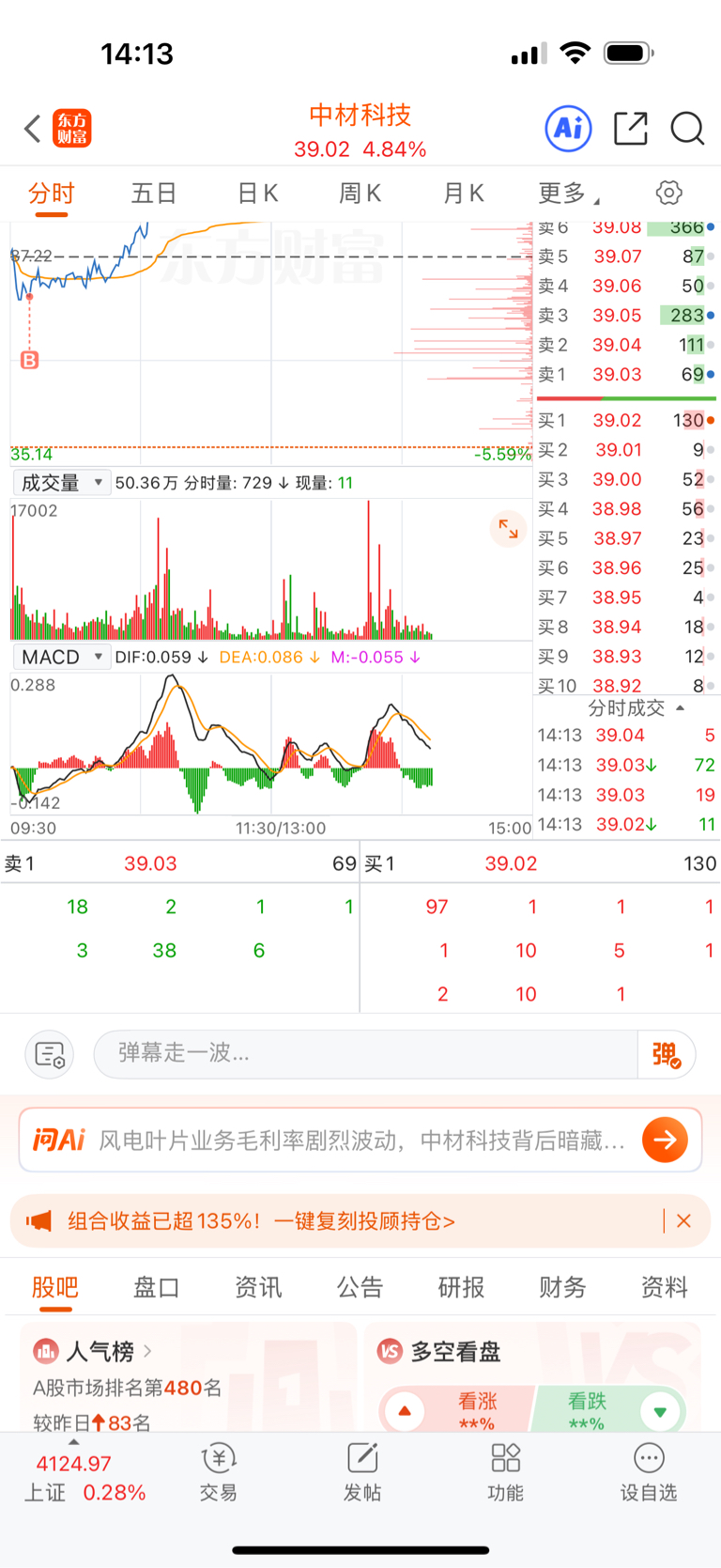 $中材科技(SZ002080)$ 买的有点少啊 来中材没赔过钱