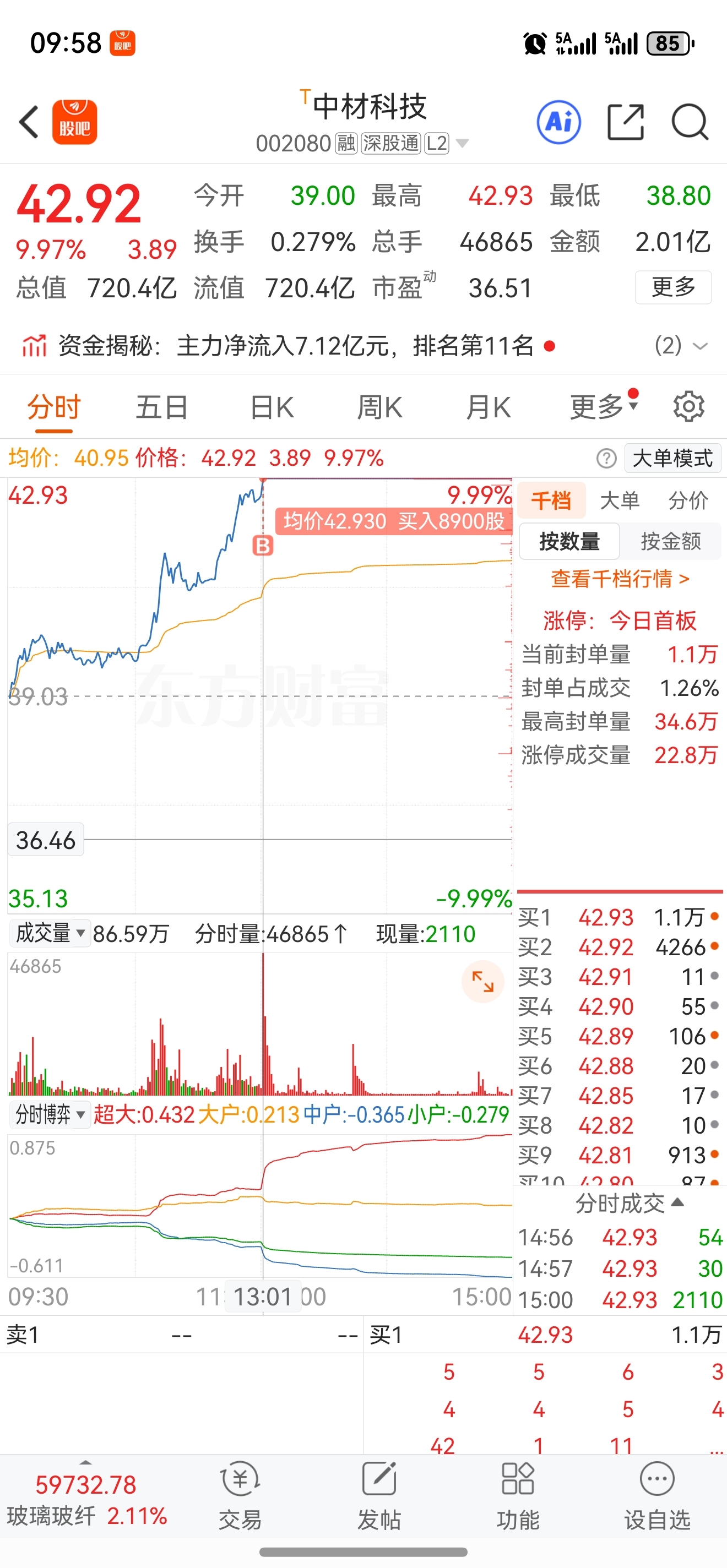 $中材科技(SZ002080)$ 位置很好,量能也不错,上板扫了一笔,小仓位试错拿个先手。