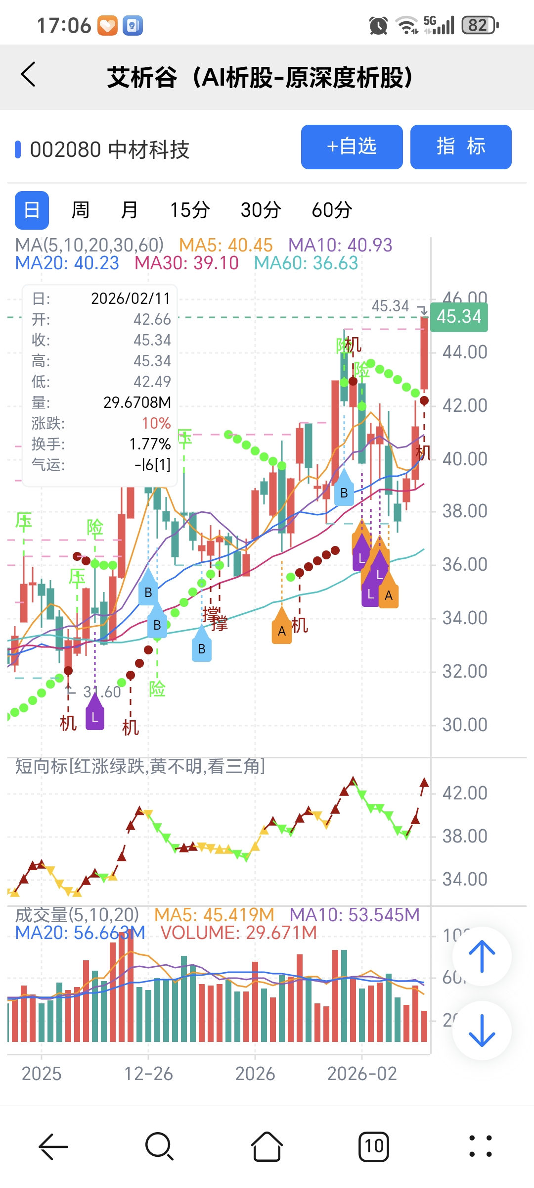 AI模型选股,量化指标识别关键点,简单技术分析确定买卖点,结合量化和人工综合运用,才能有优势。中材科技