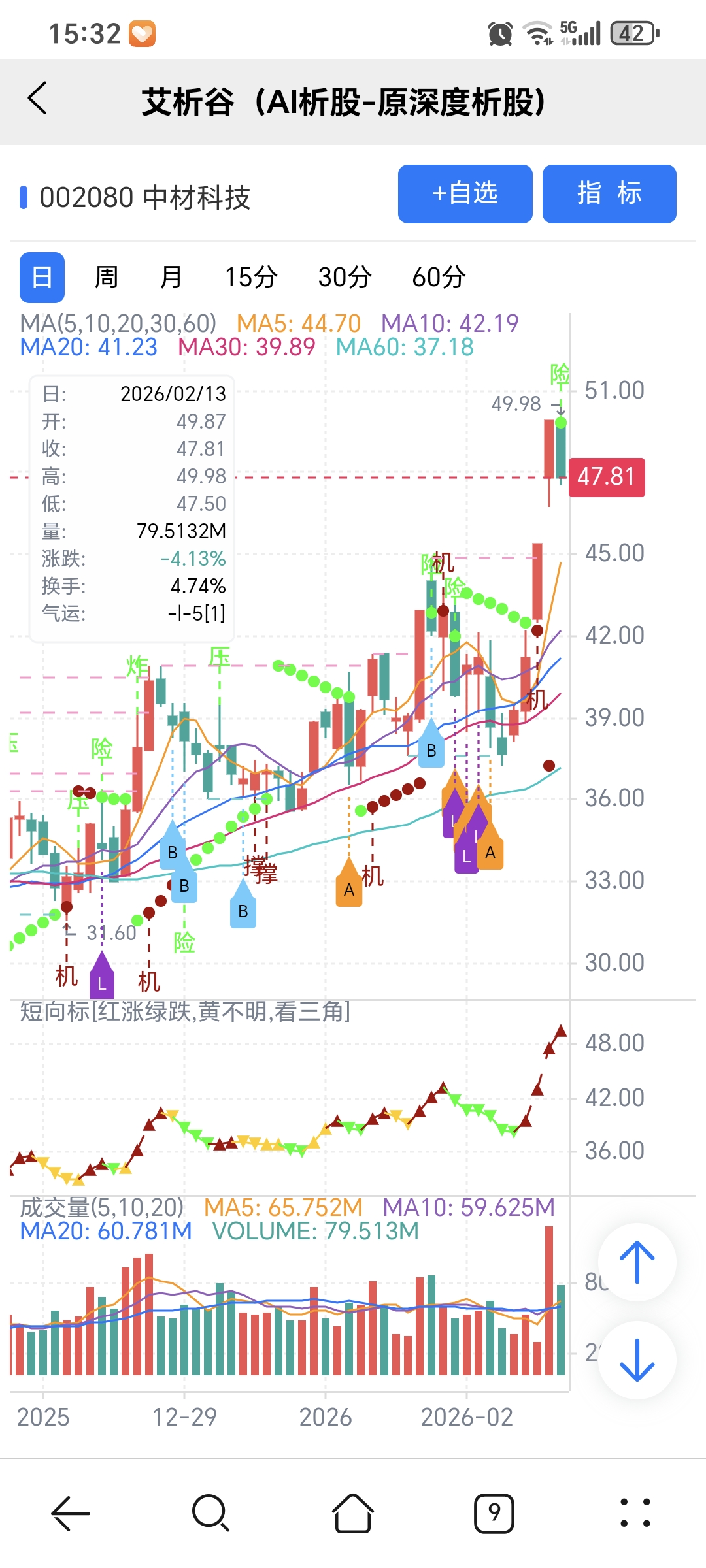 图中A、B、L 关注标记是对应AI选股模型当天下午2点多给出。