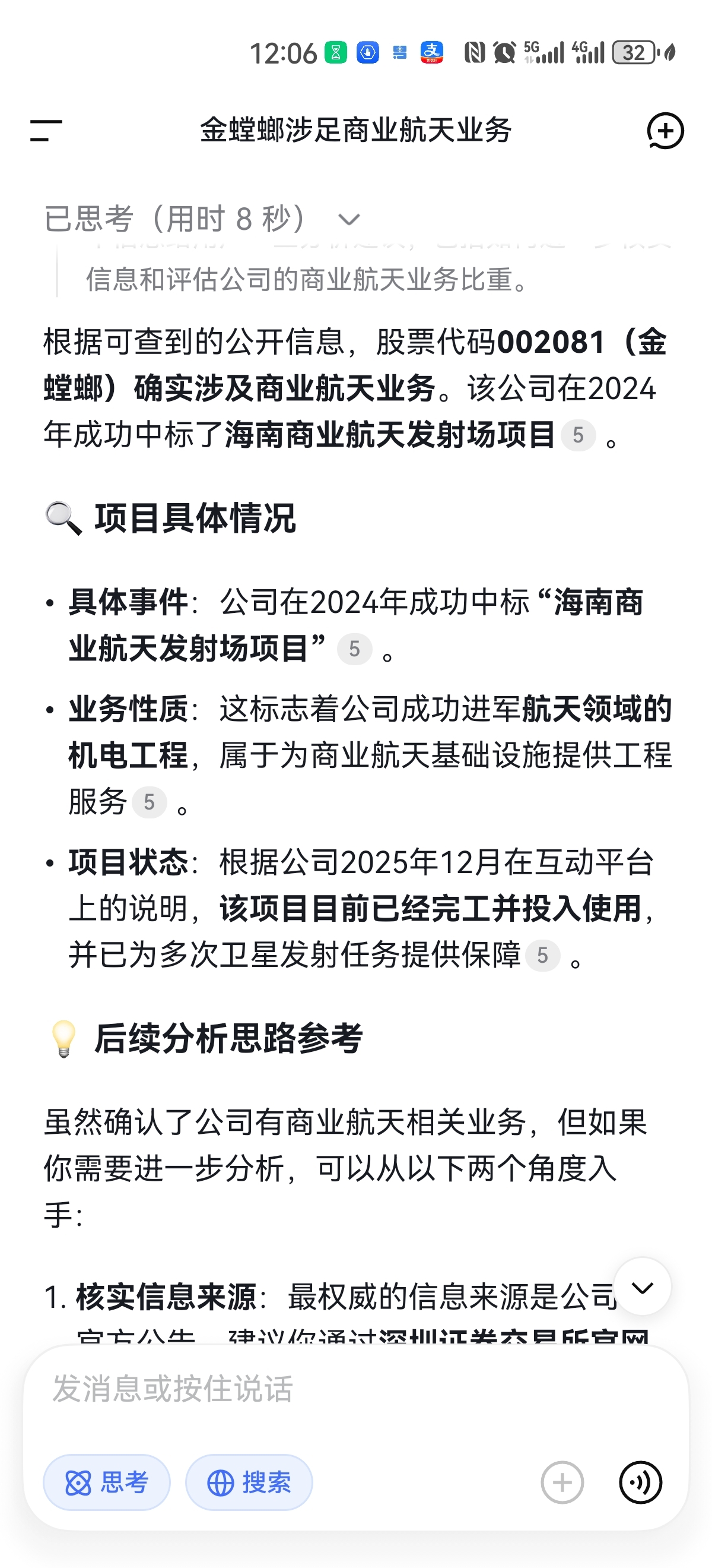 $金 螳 螂(SZ002081)$ 具备商业航天概念!请分析