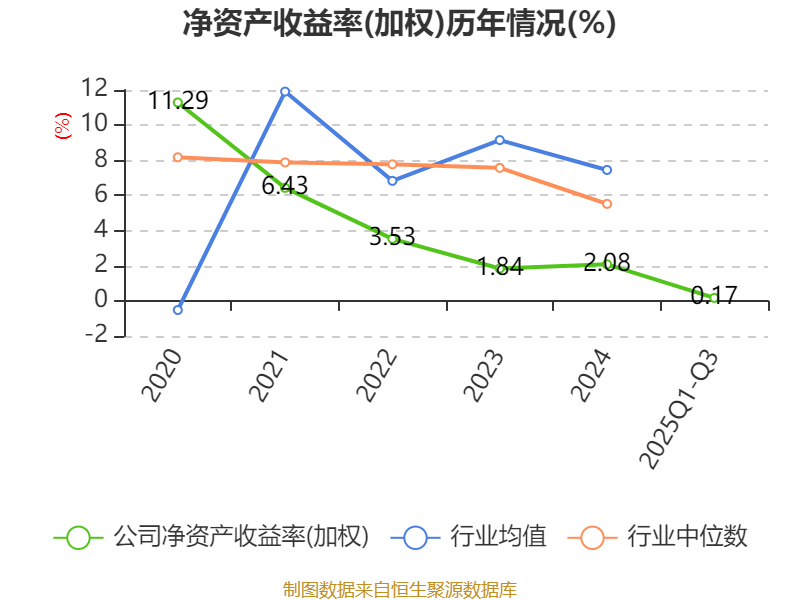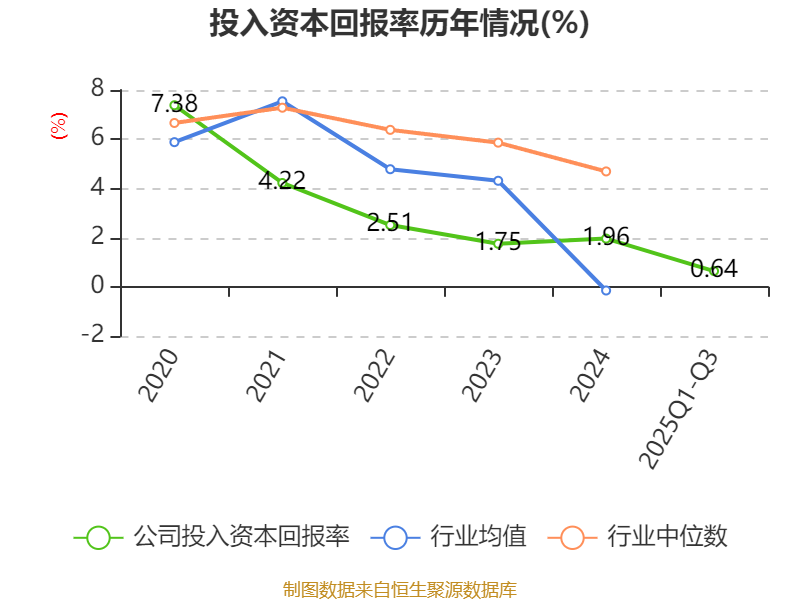 盈利能力方面, 2025年前三季度公司加权平均净资产收益率为0.17%,同比下降1.53个百分点。公司2025年前三季度投入资本回报率为0.64%,较上年同期下降0.97个百分点。