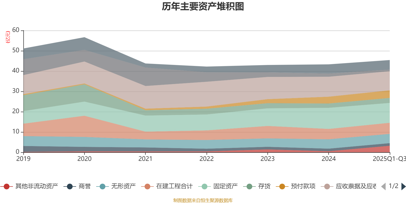 资产重大变化方面,截至2025年三季度末,公司其他非流动资产较上年末增加551.96%,占公司总资产比重上升5.89个百分点;固定资产较上年末减少5.88%,占公司总资产比重下降2.48个百分点;应收票据及应收账款较上年末减少4.63%,占公司总资产比重下降2.08个百分点;货币资金较上年末减少47.66%,占公司总资产比重下降1.84个百分点。