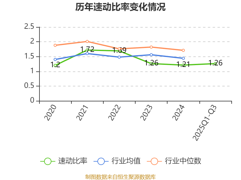 2025年前三季度,公司流动比率为1.47,速动比率为1.26。