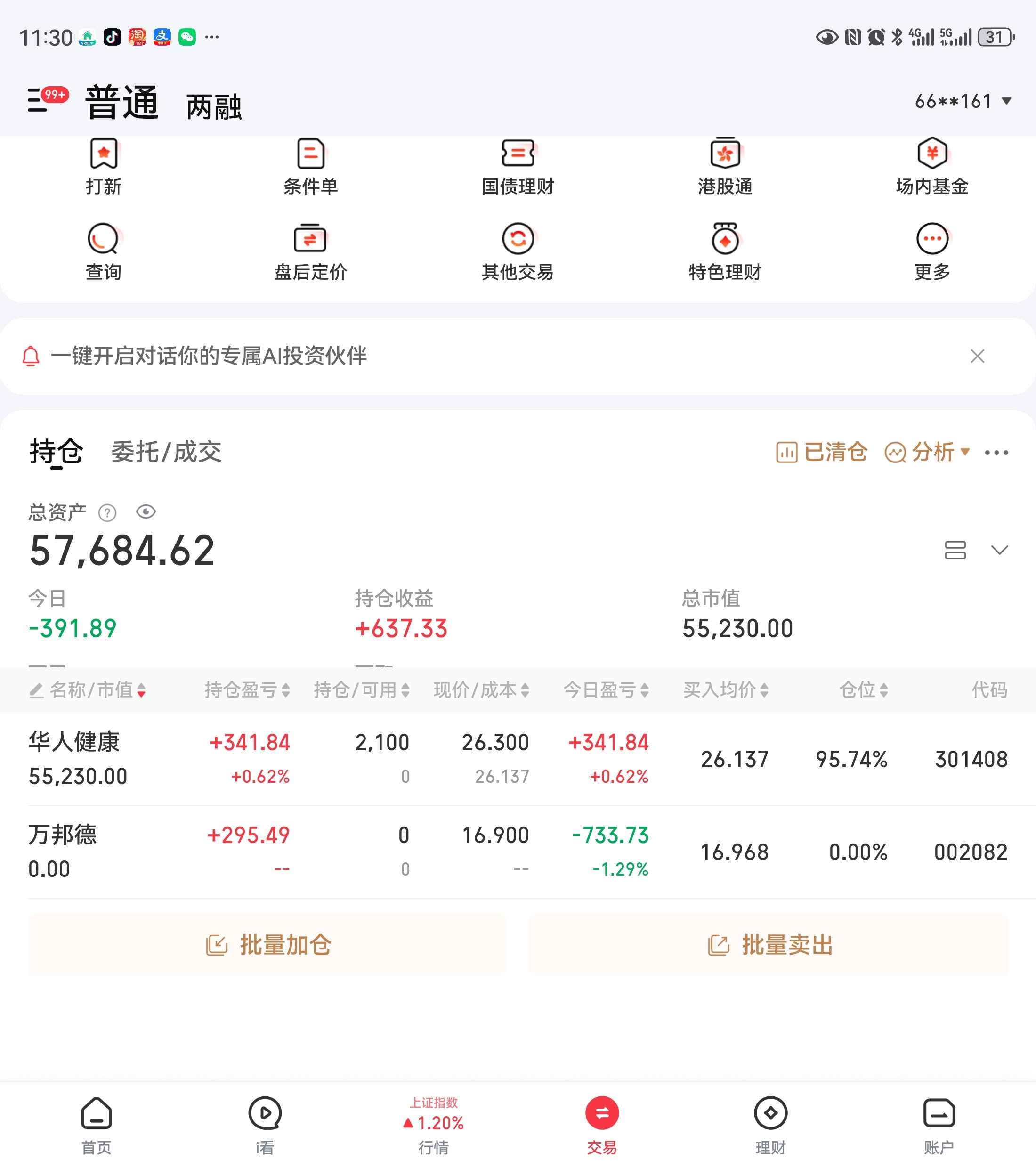 11.14午盘:出万邦德,进华人健康。市场弱亏钱也就罢了,这么炸裂的市场还亏钱,