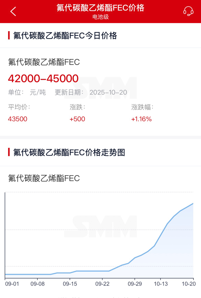 FEC今天为4.35万/吨,10月13号为3.93万/吨