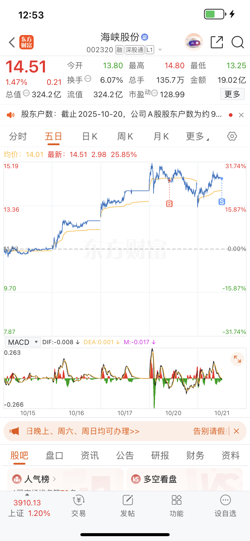 明天和海峡一样低开六个点吗