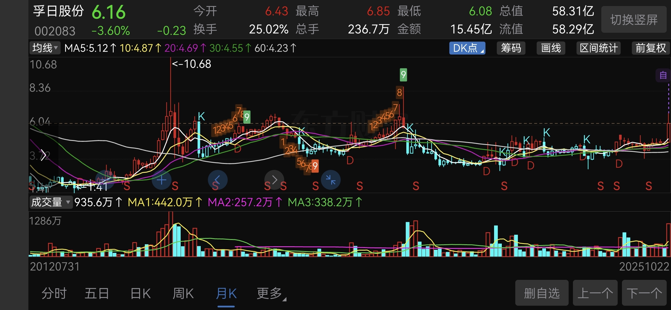 $孚日股份(SZ002083)$ 月线三根香看看