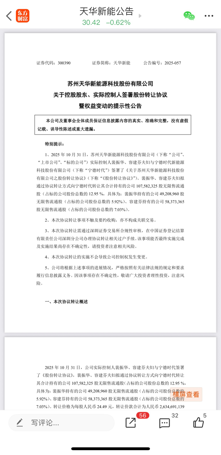 锂电行业争夺资源大战于10月31揭开序幕!今晚公告,宁王入股天华新能,中创新航入