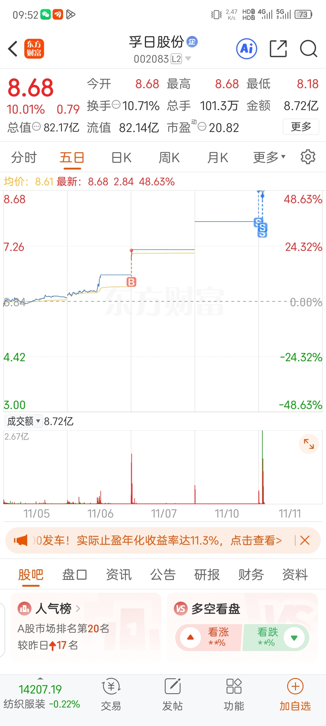 $孚日股份(SZ002083)$ 撤了。不过好像今天转强了。估计还有肉。祝大家继续发财