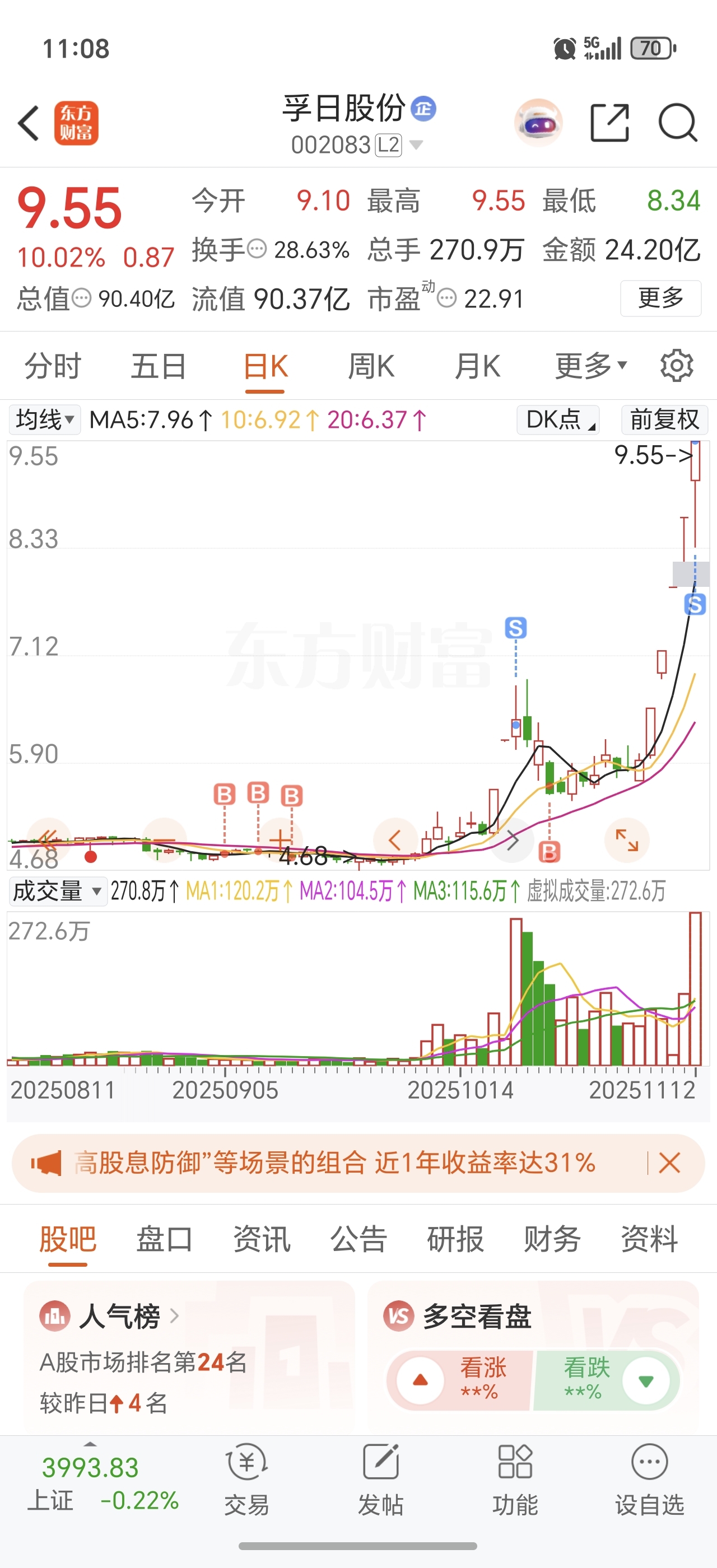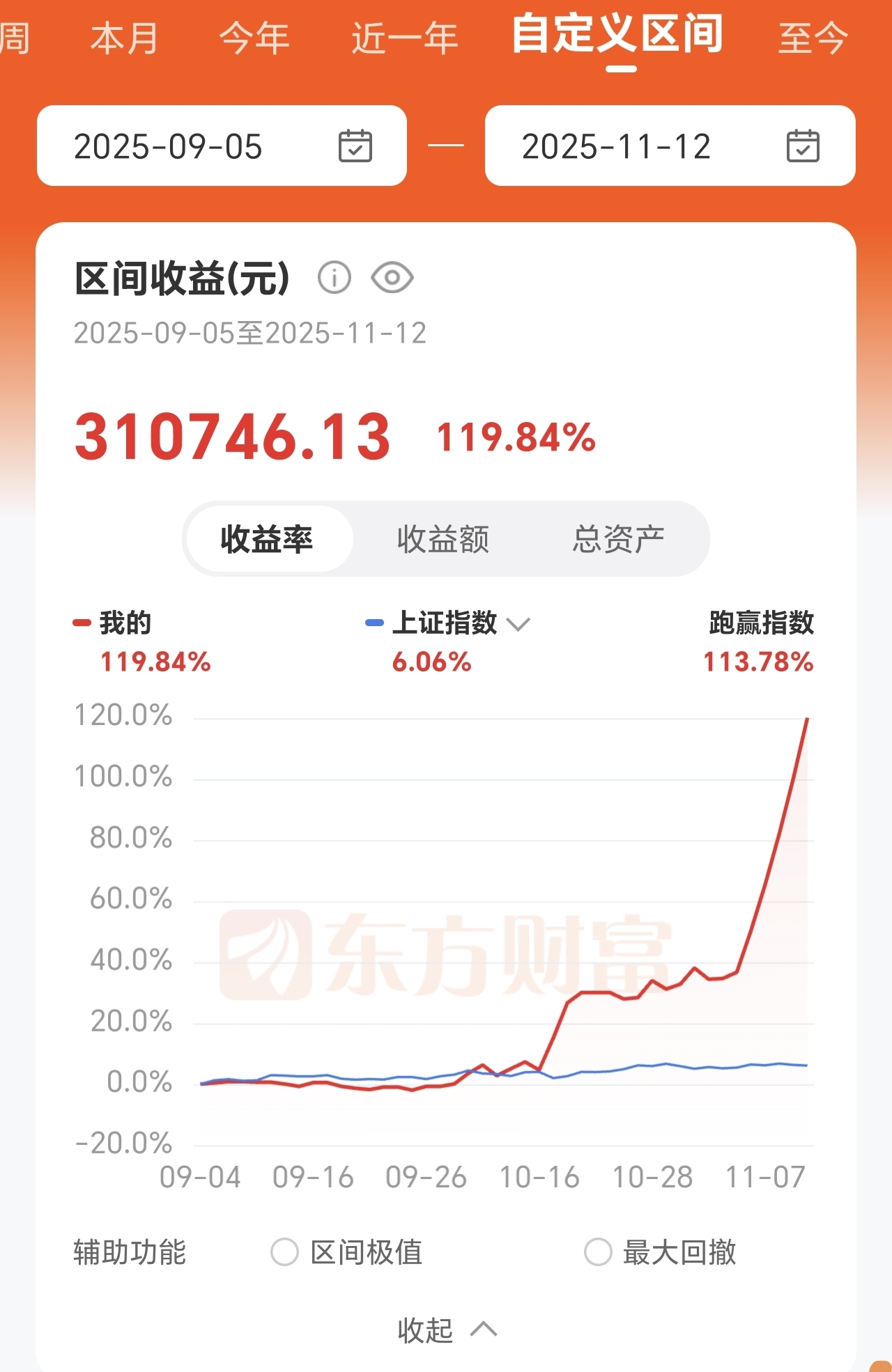 9月5日入孚日股份,11月12日出来,累计收益31个,119%的涨幅,感谢孚日,