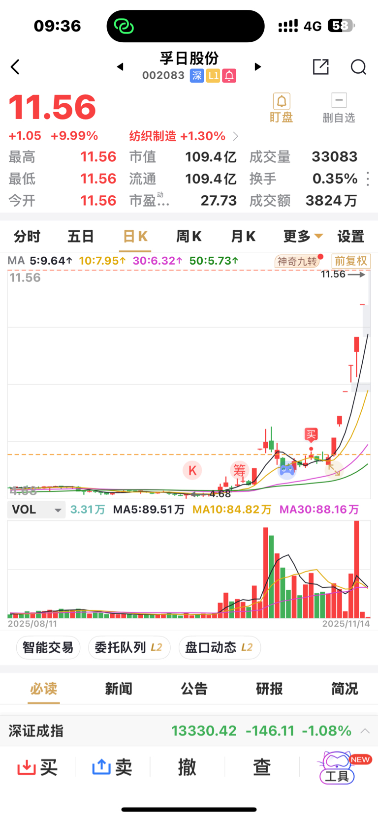 $孚日股份(SZ002083)$ 早上一字板卖了,是不是傻?我根本不知道接下来怎么走,有点恐高就卖了