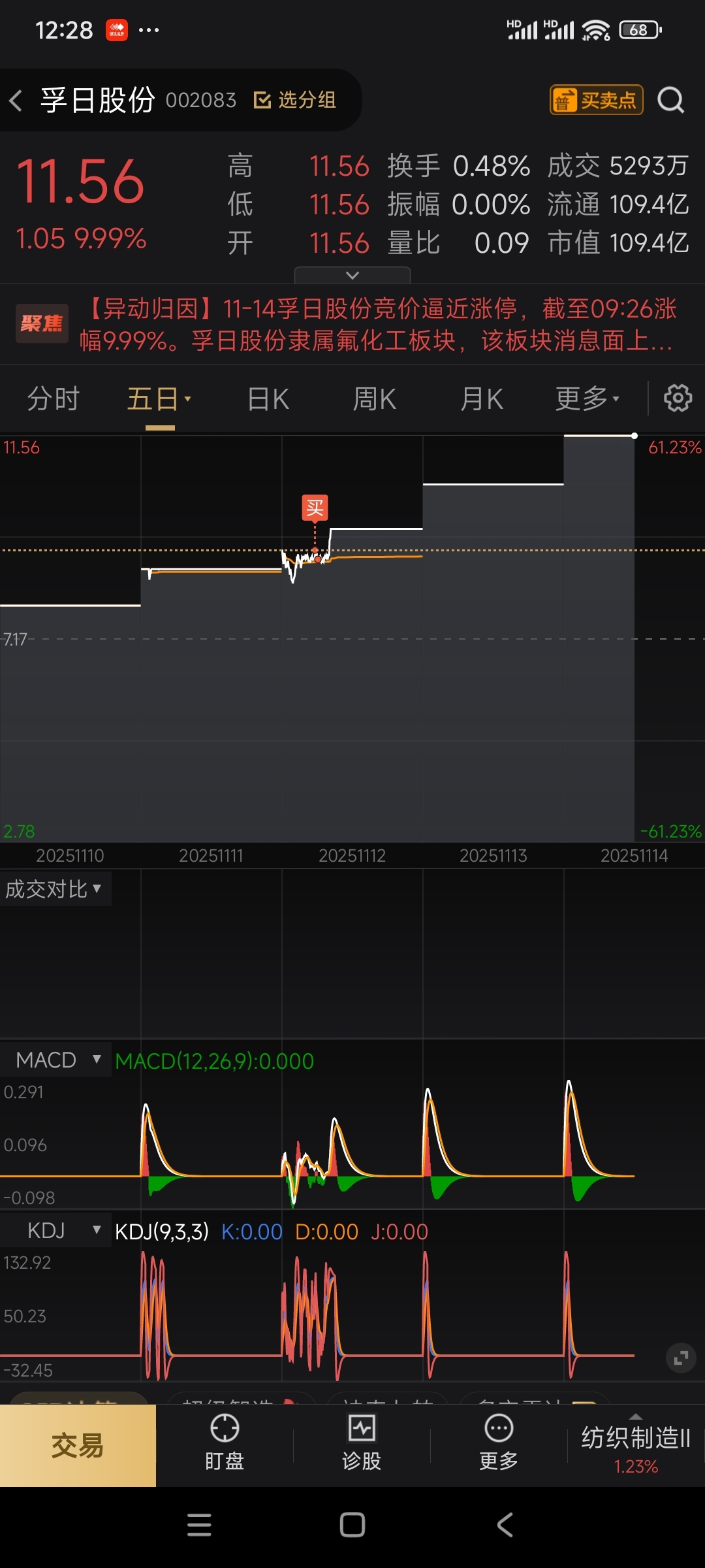 $孚日股份(SZ002083)$ 闲得,天天搞一字,都没法加仓