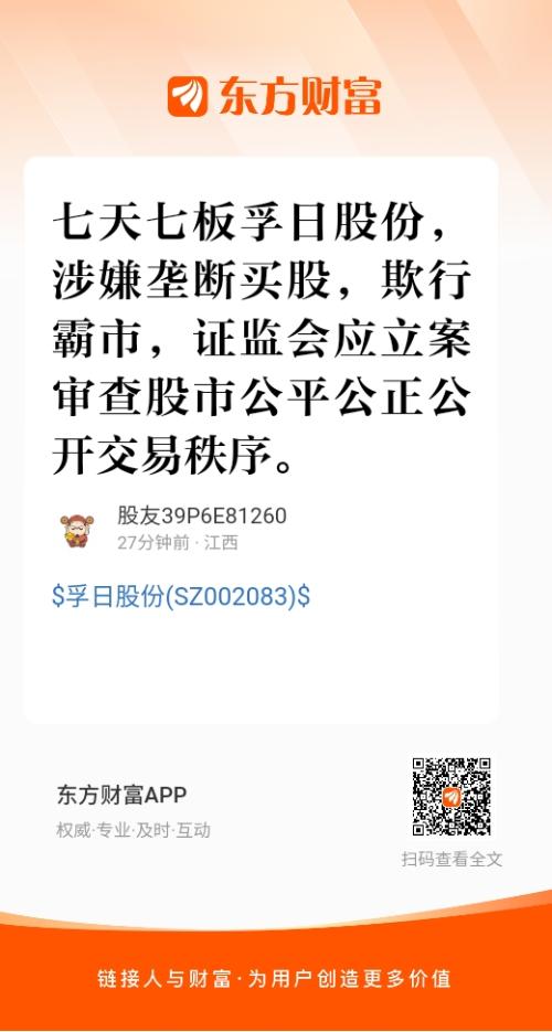 温馨提示: 1.根据《证券法》规定,禁止编造、传播虚假信息或者误导性信息,扰乱证券市场;2.用户在本社区发表的所有资料、言论等仅代表个人观点,与本网站立场无关,不对您构成任何投资建议。用户应基于自己的独立判断,自行决定证券投资并承担相应风险。《东方财富社区管理规定》