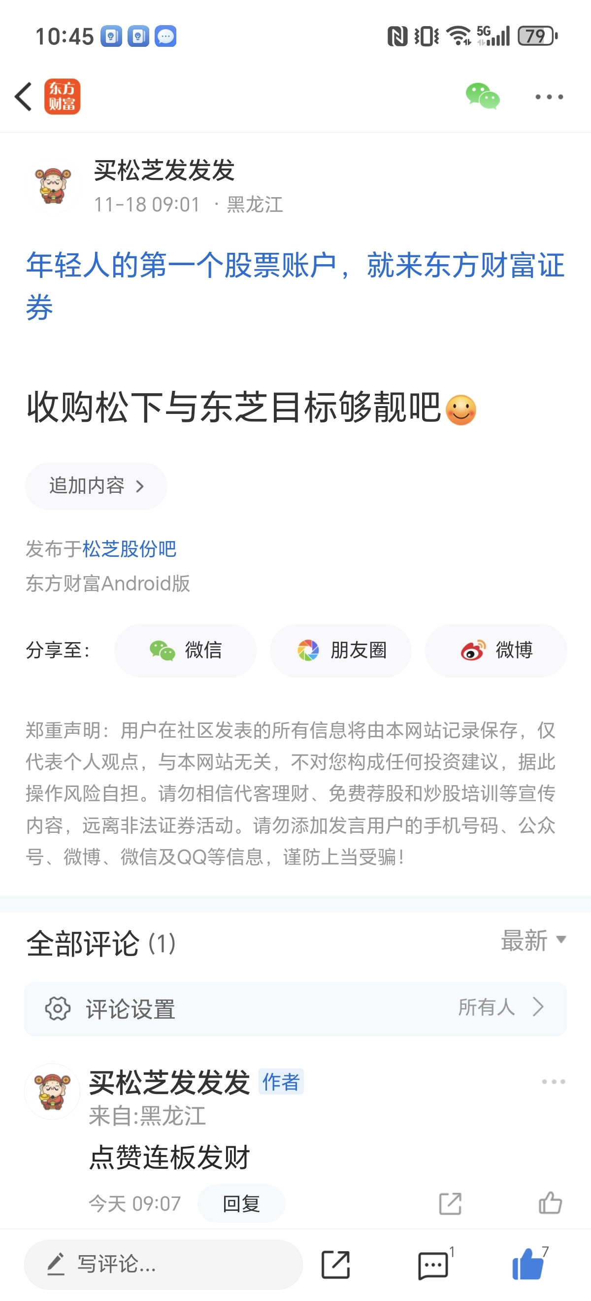 温馨提示: 1.根据《证券法》规定,禁止编造、传播虚假信息或者误导性信息,扰乱证券市场;2.用户在本社区发表的所有资料、言论等仅代表个人观点,与本网站立场无关,不对您构成任何投资建议。用户应基于自己的独立判断,自行决定证券投资并承担相应风险。《东方财富社区管理规定》