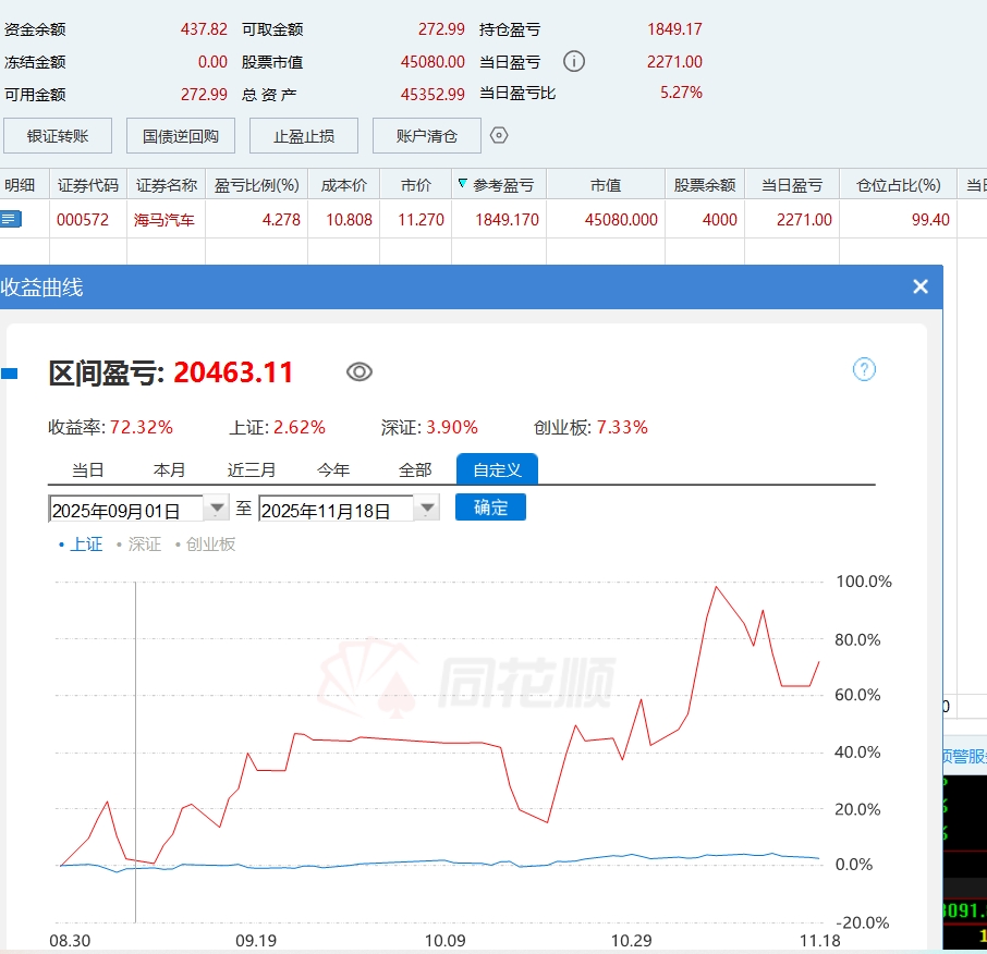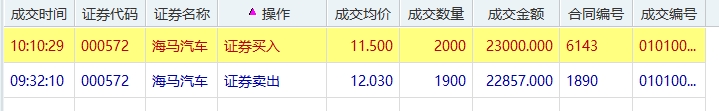 $孚日股份(SZ002083)$ $平潭发展(SZ000592)$ $时空科技(SH605178)$ $海马汽车(SZ000572)$ 四年万倍,4万到1亿,亿万富翁实盘第15天午休持仓。跨年龙000572涨停出来一半5个点接回来,没有想到又下杀到2个点,主力真的是太狠了,暂时不想频繁换股了,就拿着000572反复高抛低吸就可以了,当初坚定看好的605255新高了,如果不频繁换股,来回反复做605255,现在账户资金都到7万多了,因为频繁换股,导致现在只有5万不到,损失40%,代价太大了,血的教训应该引以为戒,以后不要再犯同样的错误。