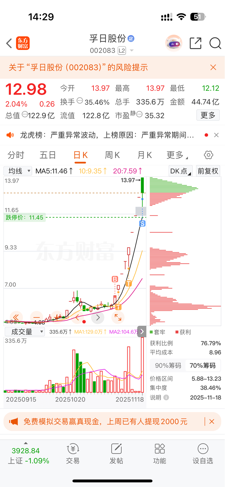 $孚日股份(SZ002083)$ 上午红没卖,绿了才跑,亏了近一个板,唉