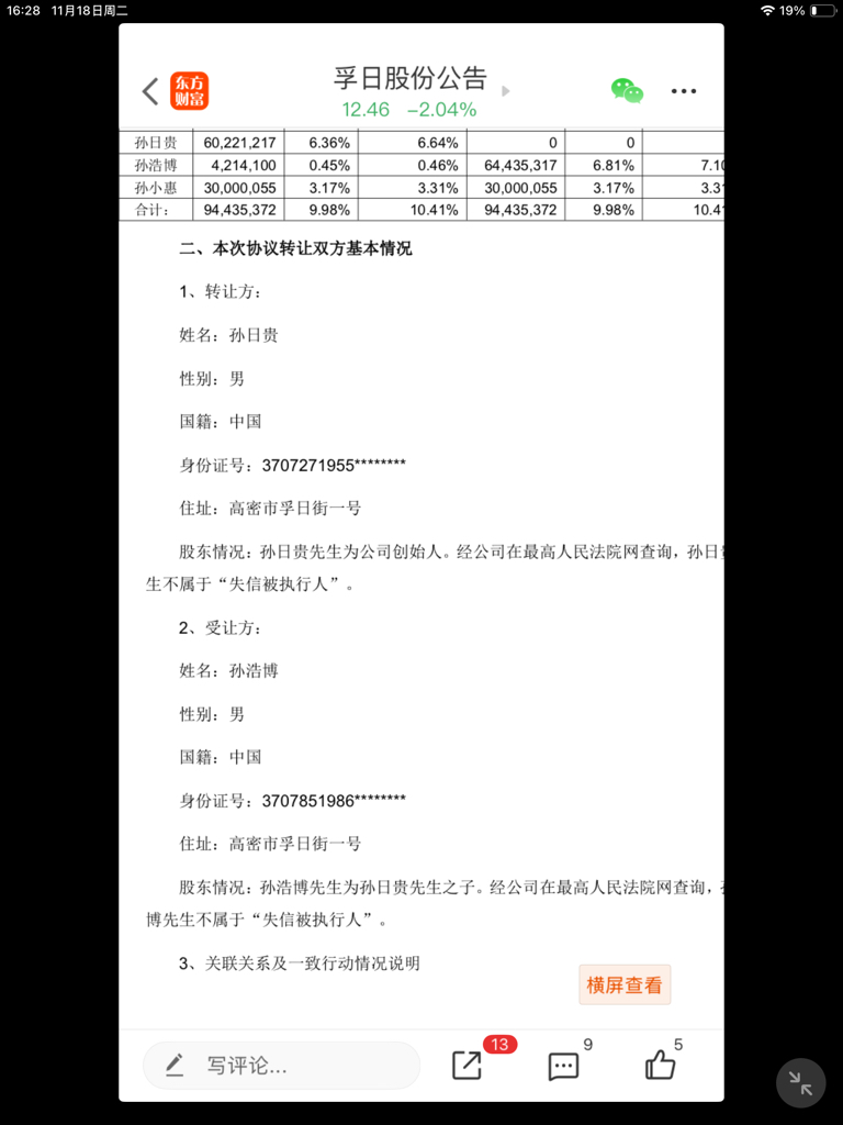 10月30日《转让协议》己公告,父亲股份转让给儿子,当日股价就是5元多….别紧张