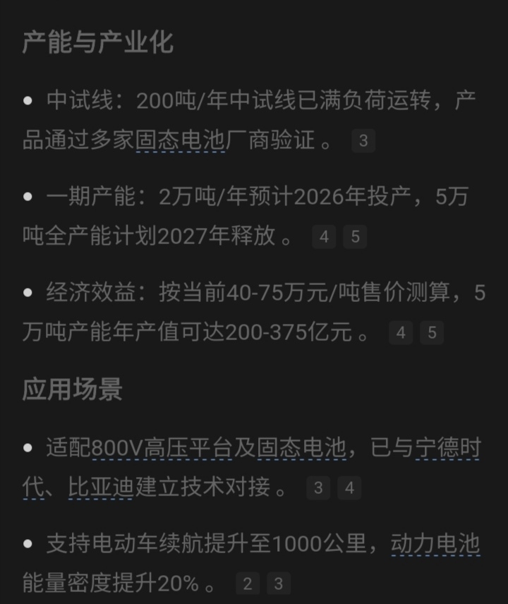 002083即将成为我国固态电池负极材料的领导者因为其技术最领先在建产能最大!02083固态电池负极材料技术性能国内领先的原因在于与冯守华院士和其技术团队深度合作!002083固态电池碳硅负极在建产能(5万吨)大幅领先国内所有上市公司!001301还没开始建碳硅负极生产线!603659在建的碳硅负极生产线产能仅仅1.2万吨!其他上市公司的碳硅负极生产线产能远小于一万吨!