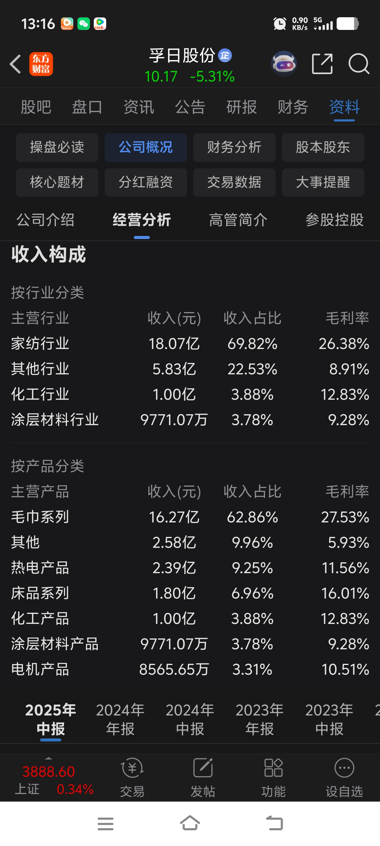$孚日股份(SZ002083)$ 化工就1亿啊,哥们,这玩意就是卖毛巾的