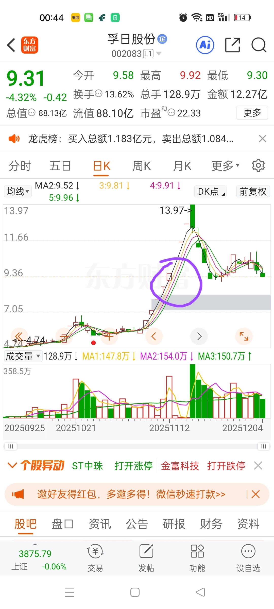 $孚日股份(SZ002083)$ 这种票简单的要死,一眼就可以看到这里均价下才能买,右侧没有大阳线吃完这个量能,没跌到下面看都不要看它,这是个获利盘消化K线,也是个抛压量能