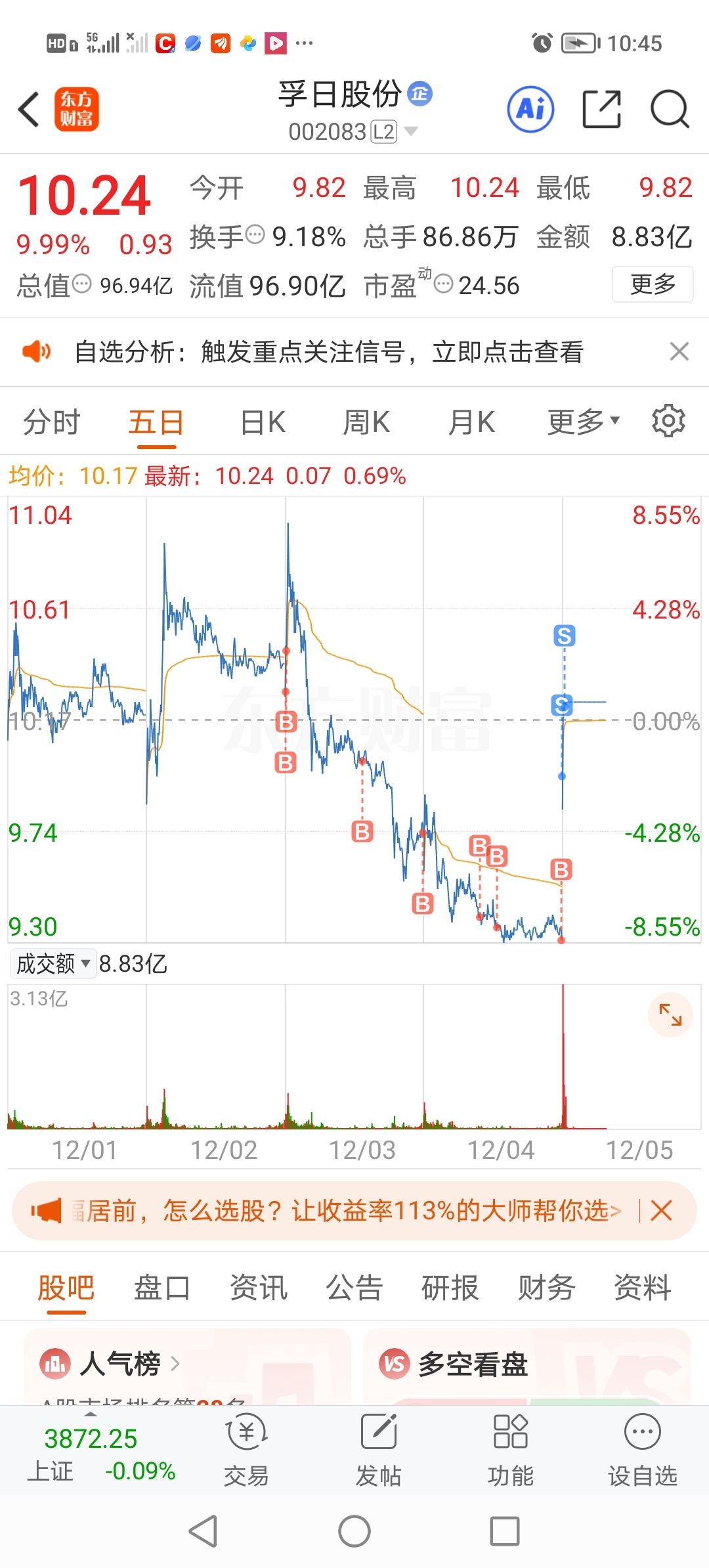 $孚日股份(SZ002083)$ 昨天把我绿好惨