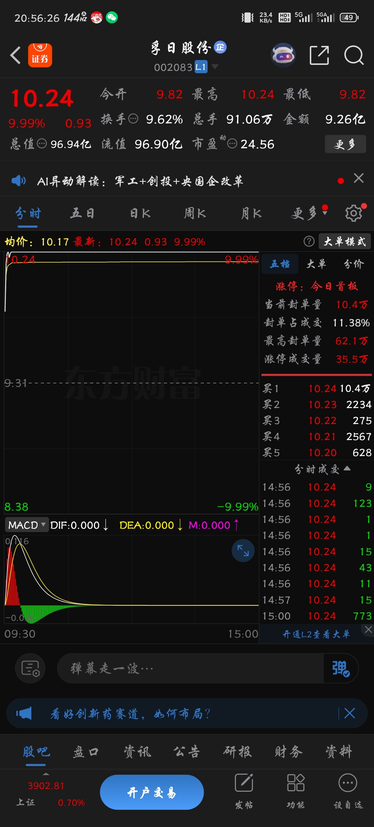$孚日股份(SZ002083)$ 10.4w封单,塞牙缝都不够,一砸就按地板噢。真搞不明白为什么那么多人唱多,我怀疑他们是不是有一个群,然后忽悠接盘