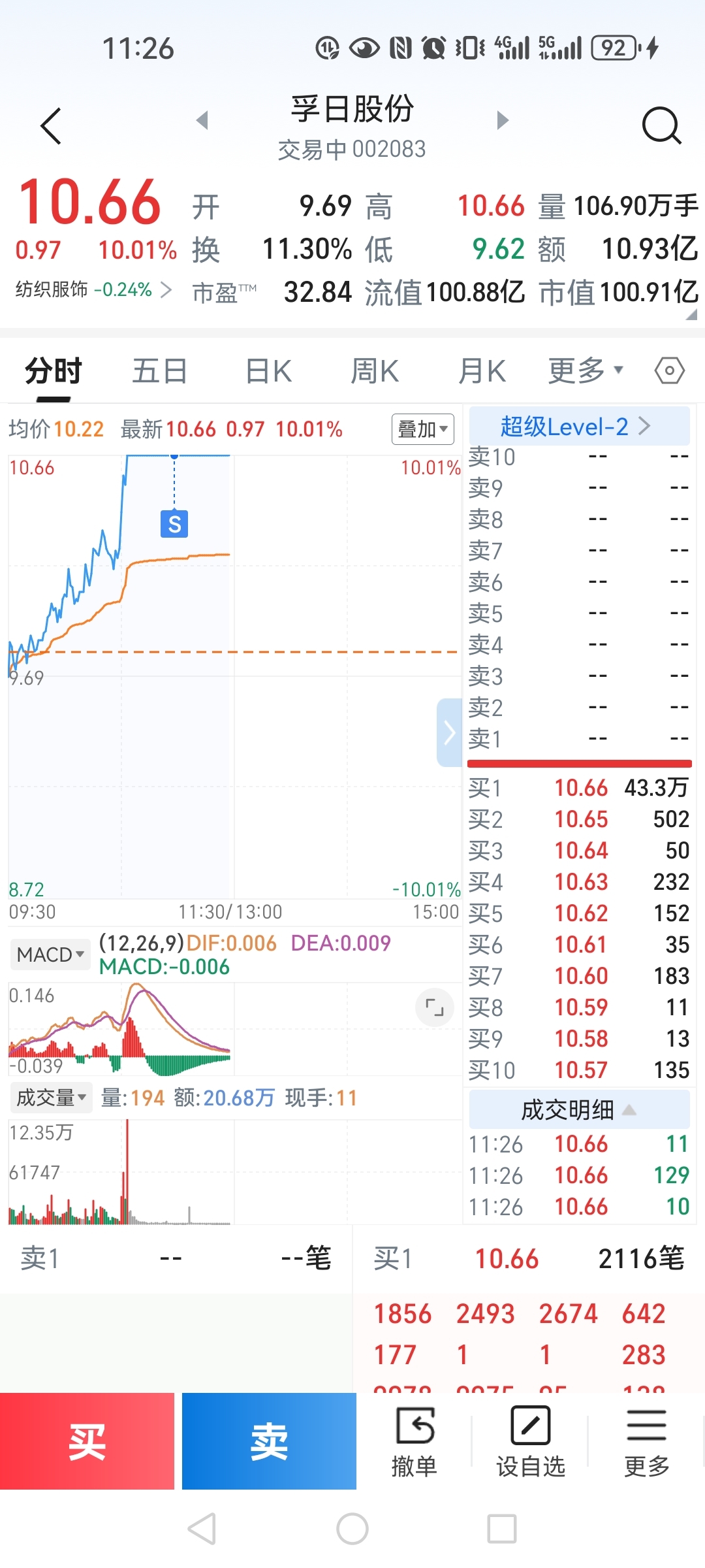 $孚日股份(SZ002083)$ 每次涨停!第二天都没有议价,今天逃了一大半!博一下明天!