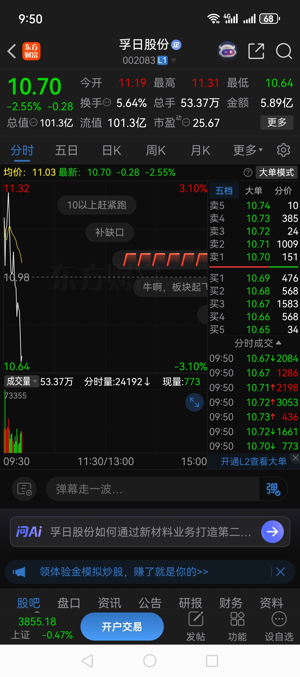 $孚日股份(SZ002083)$ 感谢,主力冲高给我跑了