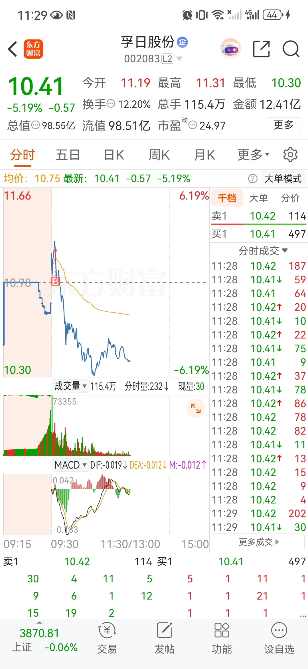 $孚日股份(SZ002083)$ 家人们对不住。又又又又被我买崩了。说说这几天的操作,家人们等我卖了反向买就可以了。首先,买海马,被套两天,卖了他就涨停了。买银河电子被套,一卖就拉两天。买航天科技被套两天,昨天卖了今天涨 ,卖顺灏,卖飞20个点。这种操作屡见不鲜。我一买就崩了,卖了第二天必涨(至少我这几天卖的票第二天都涨了)。。今天的操作。卖了骏亚,家人们今天可以抄底了。