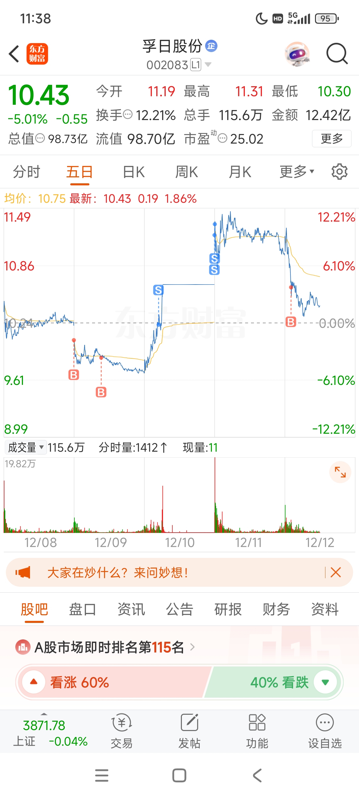 我看涨到12以上,一般我吹票了,就要跌了,你们赶紧跑吧
