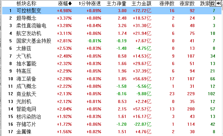 周五的行情是先跌后涨,很多人都知道了美联储要降息,咱们也表示要跟着降准降息,其实还有一个好消息,就是量化被限制提上日程,传闻是要把量化的机器从交易所中撤出,并且在年底前完成,这两天大盘动荡应该也是受到这个消息的影响,量化逃离会对对盘面造成短线压力,所以一路震荡,但长线是利好,下周还有望走修复行情,当前滞涨的个股也会有补涨的空间。收盘可控核聚变、贵金属、电网设备、商业航天等相关设备板块领涨,零售、海南、免税店、医药板块领跌,基本都是大消费领域补跌。商业航天跟贵金属有一定得延续性行情。