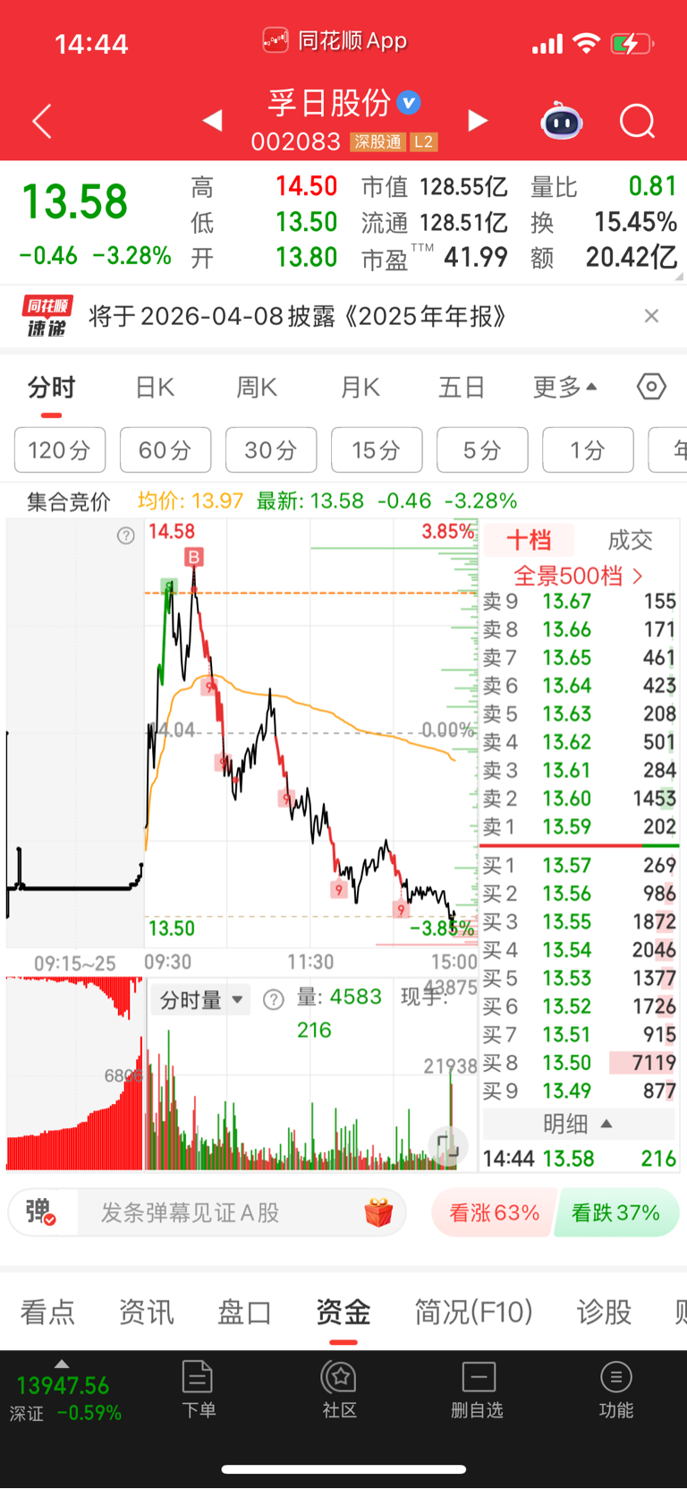 $孚日股份(SZ002083)$ 差不多吃一个跌停大家快来笑话我,已经麻木了,明天又要割割割了