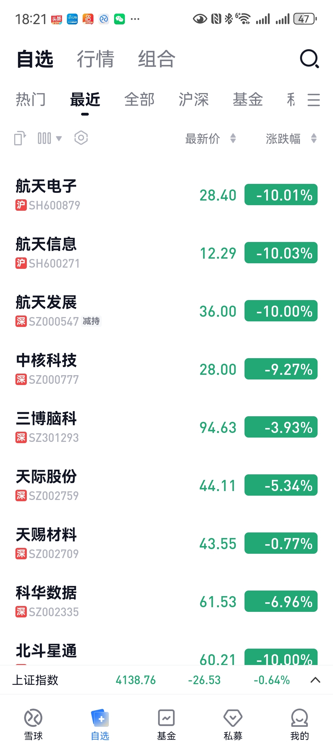 真的是惨烈啊,今天商业航天板块几乎是百股跌停了