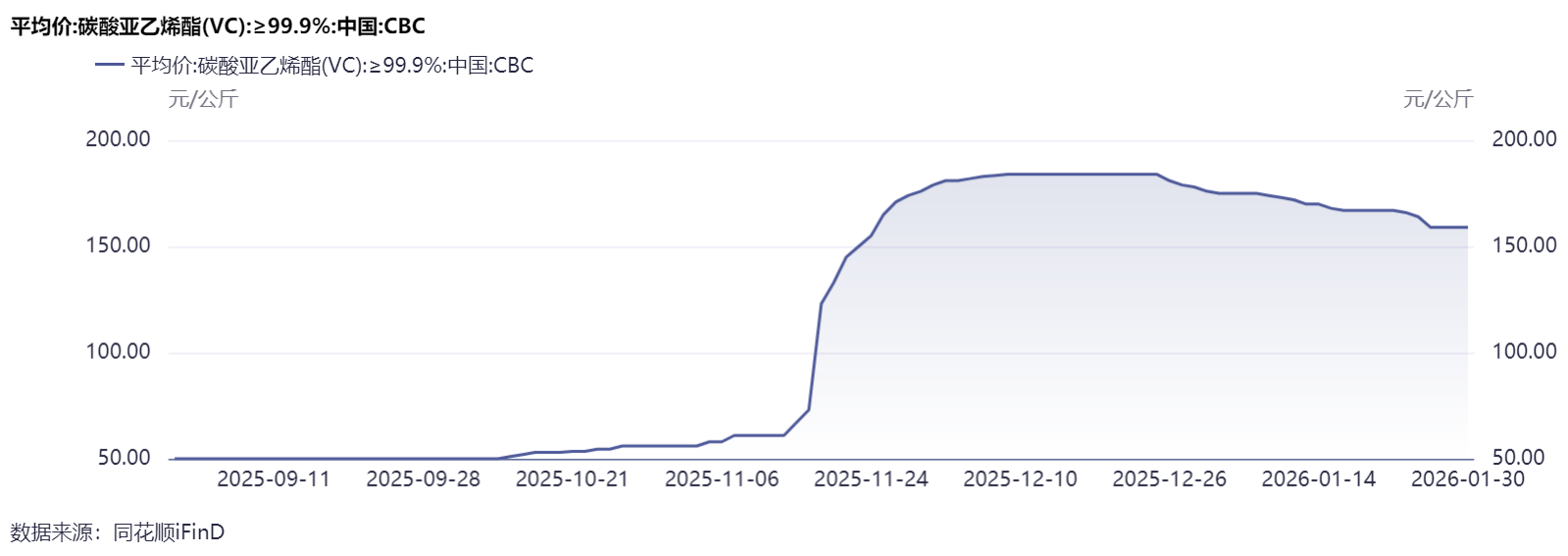 值得注意的是,VC价格已从高位回落。截至2026.1.30,已回落至15.9万元/吨。