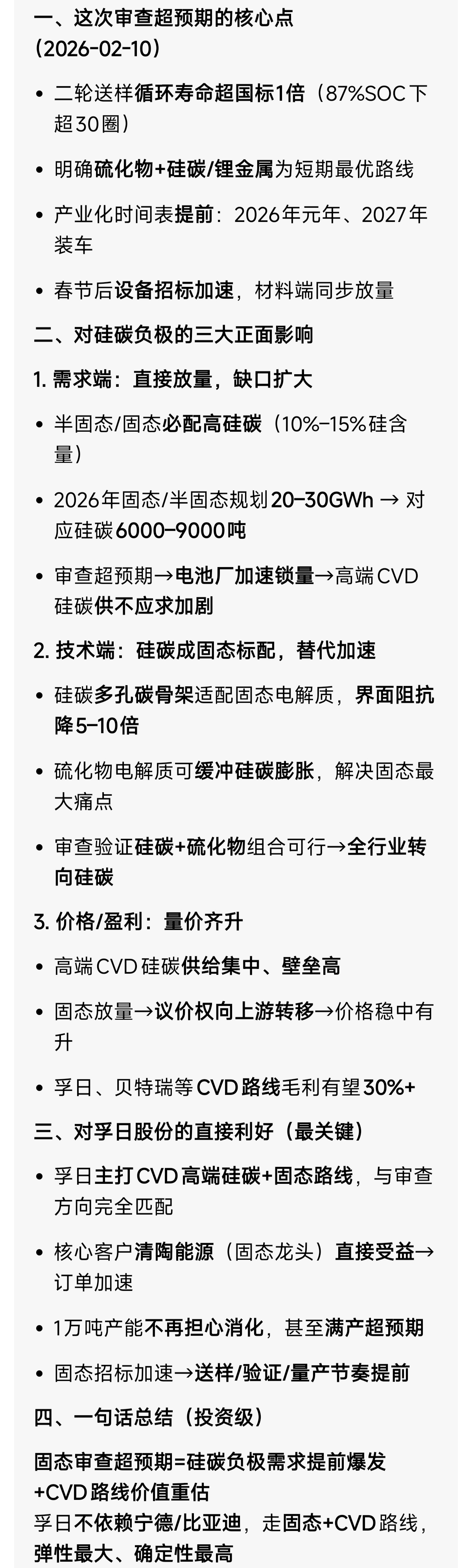 固态电池中期审核超预期,固态电池使用硫化物+硅碳负极路线确定,后面就是抓紧量产了