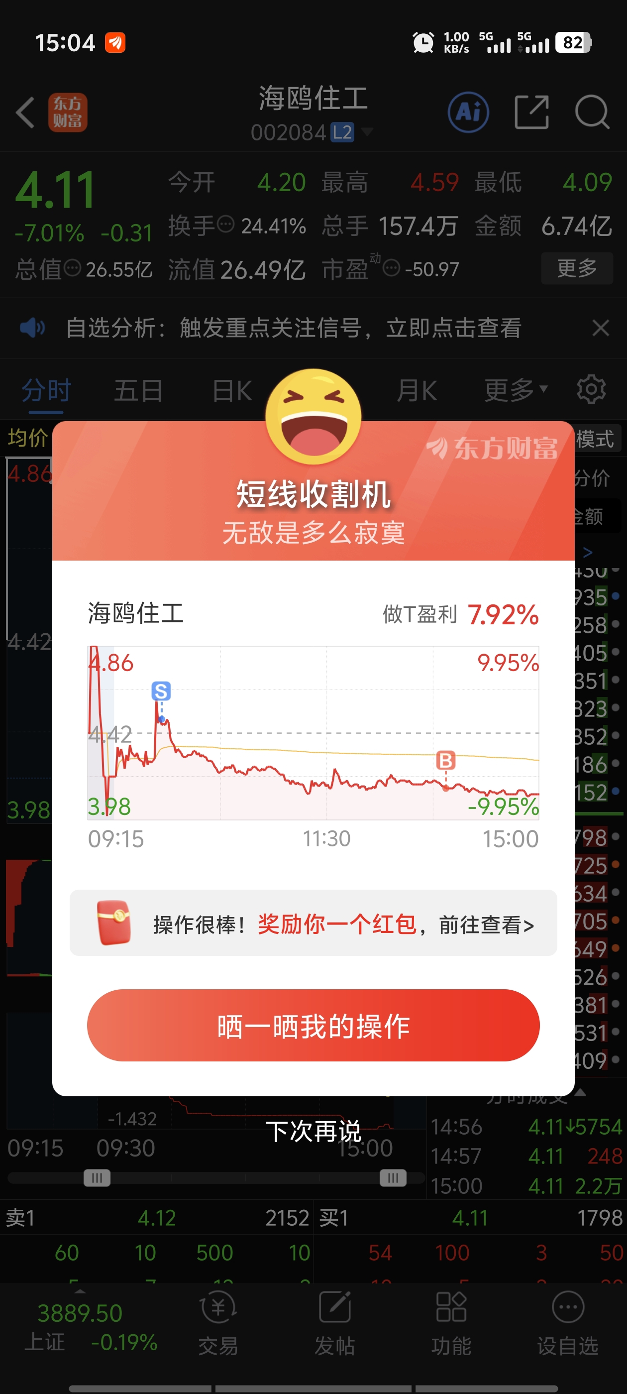 $海鸥住工(SZ002084)$ 今天做了个T,没跑!明天继续