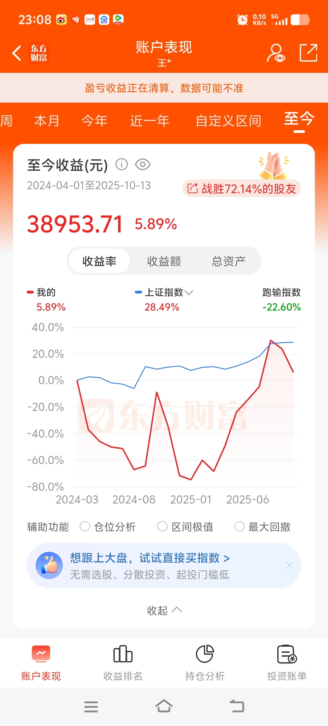 $海鸥住工(SZ002084)$ 真赚不到钱,最近回撤了30%多了。我从去年4月份开始玩的,大起大落的,到现在赚了5%,可笑的是既然战胜了72%的股友,有多少人赚钱有多少人亏钱一目了然。别幻想你就是那个万中无一的人,真要是你就不会在这赌了。醒醒吧,兄弟们。
