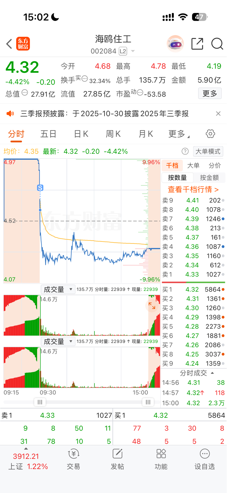 $海鸥住工(SZ002084)$ 开盘不跑的你是这个