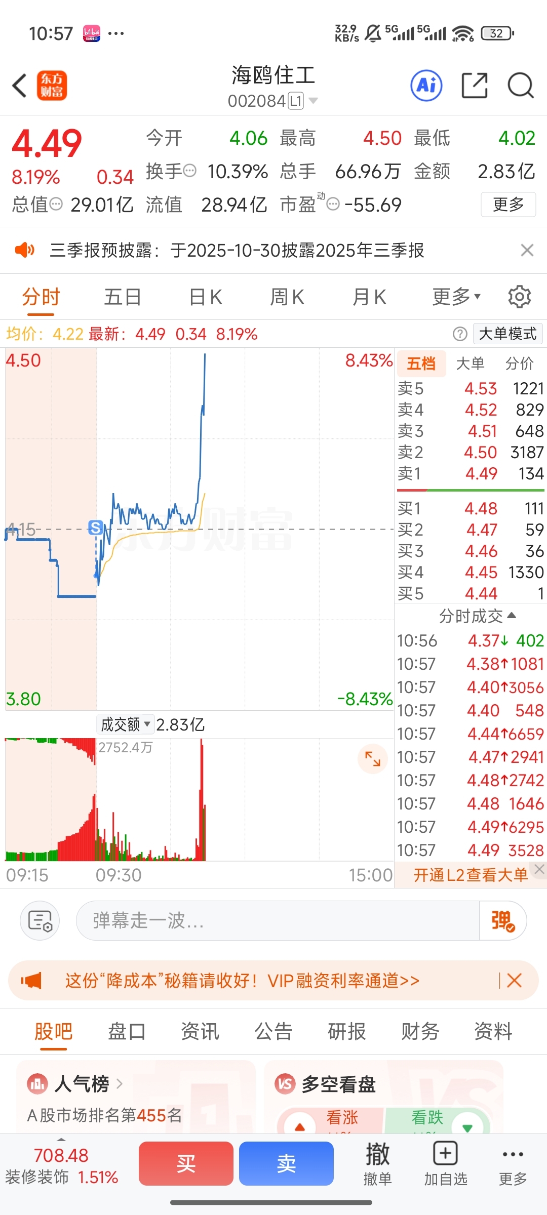 $海鸥住工(SZ002084)$ 我真是菜逼