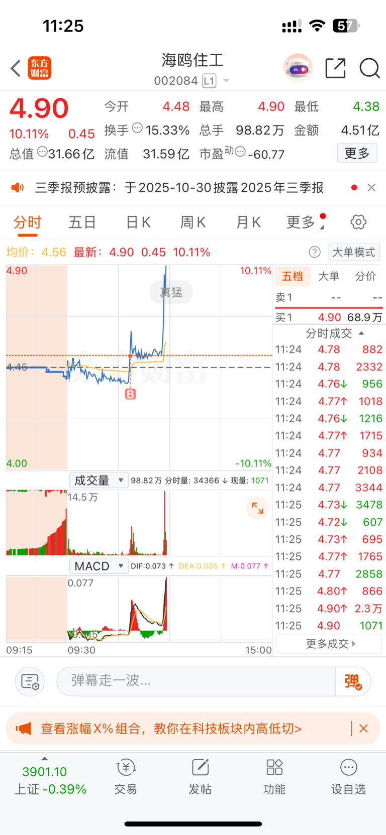 $海鸥住工(SZ002084)$ 什么鬼啊?我都不抱希望了的,几秒拉涨停?