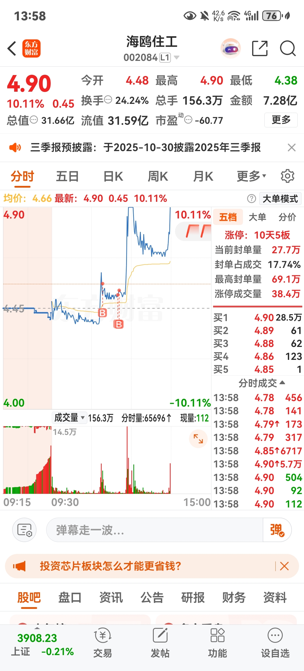 $海鸥住工(SZ002084)$ 彻底洗干净了,明天看多