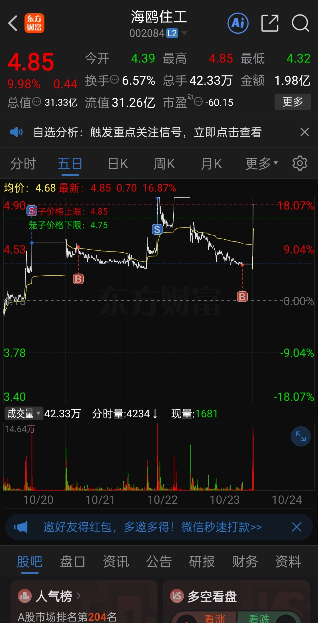 $海鸥住工(SZ002084)$ 看到这个过山车玩法,加上今天封板这么给力,后面至少看到5个板
