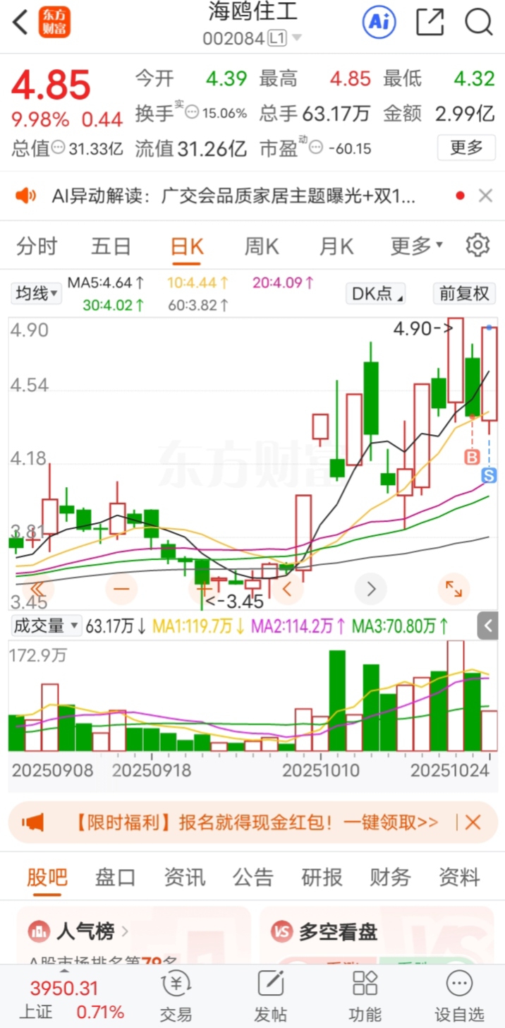 $海鸥住工(SZ002084)$ 感恩,里面的兄弟们发财