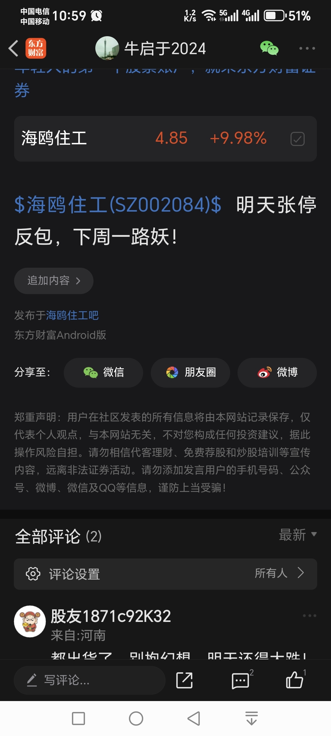 温馨提示: 1.根据《证券法》规定,禁止编造、传播虚假信息或者误导性信息,扰乱证券市场;2.用户在本社区发表的所有资料、言论等仅代表个人观点,与本网站立场无关,不对您构成任何投资建议。用户应基于自己的独立判断,自行决定证券投资并承担相应风险。《东方财富社区管理规定》