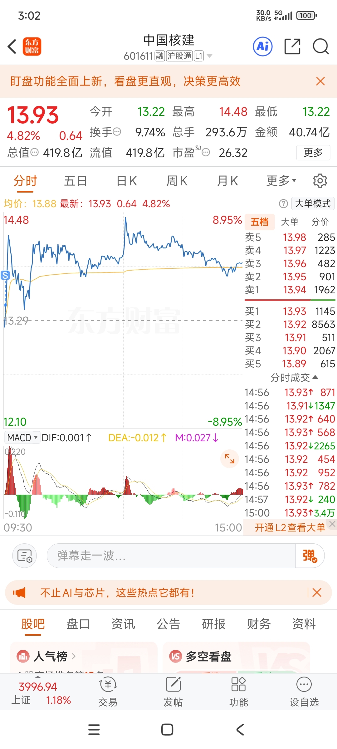 今日复盘:中国核建水下开盘,被吓出来了。小赚清仓离场。今日资金均分建仓四支股票,