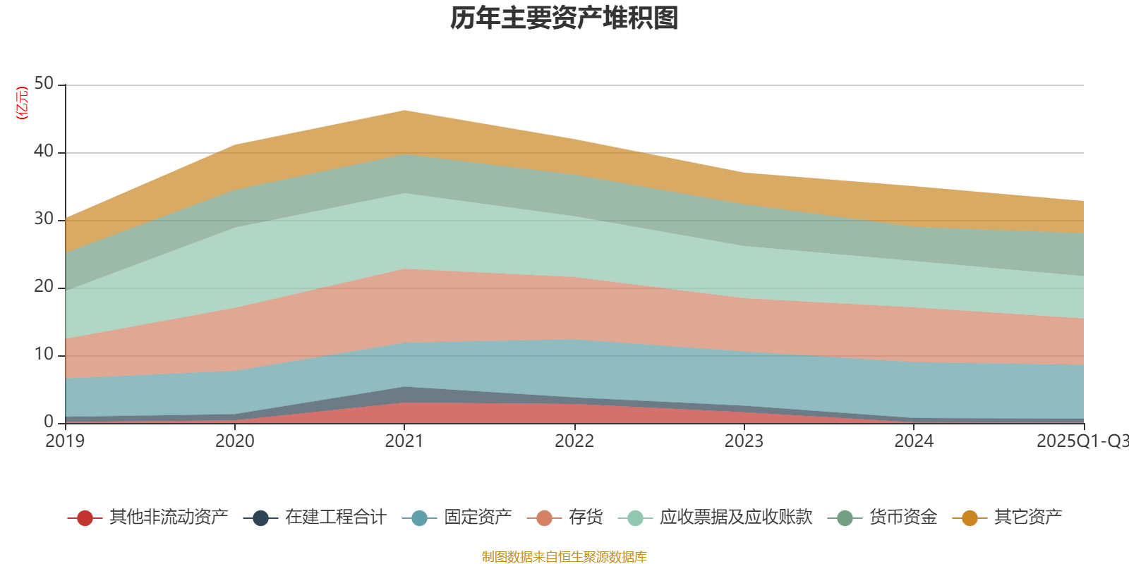 资产重大变化方面,截至2025年三季度末,公司货币资金较上年末增加24.99%,占公司总资产比重上升4.83个百分点;交易性金融资产合计较上年末减少82.14%,占公司总资产比重下降3.24个百分点;存货较上年末减少15.41%,占公司总资产比重下降2.26个百分点;固定资产较上年末减少3.73%,占公司总资产比重上升0.63个百分点。