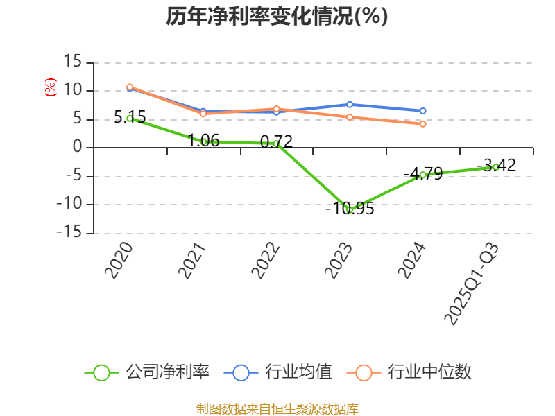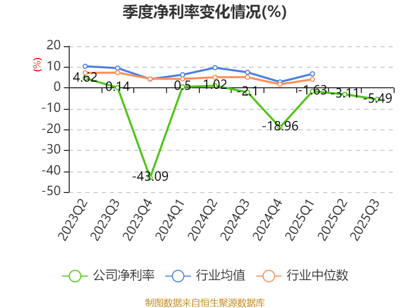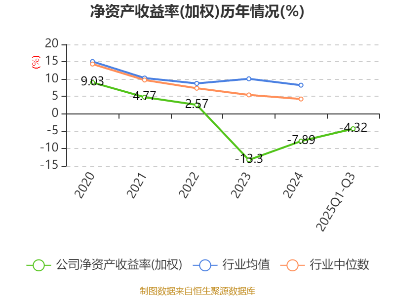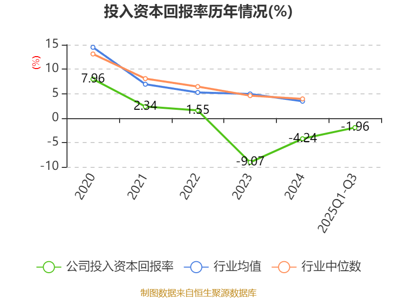 盈利能力方面, 2025年前三季度公司加权平均净资产收益率为-4.32%,同比下降4.04个百分点。公司2025年前三季度投入资本回报率为-1.96%,较上年同期下降2.37个百分点。